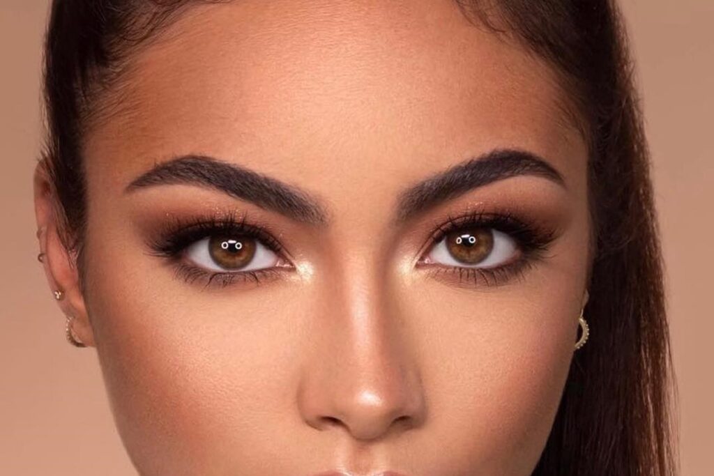 - Maquilla tus ojos de manera sutil, utilizando tonos neutros y aplicando máscara de pestañas para un efecto natural. No te olvides de enmarcar tus ojos con unas cejas perfectamente delineadas.