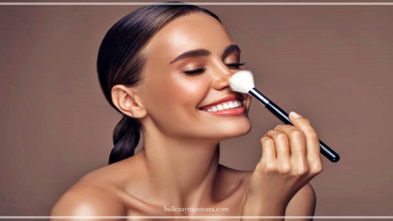 - Aplica polvos matificantes para fijar la base y controlar el brillo.